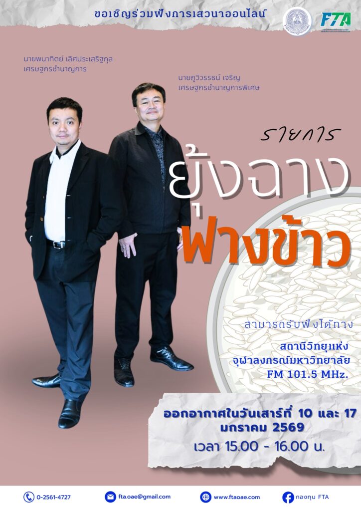 วันจันทร์ที่ 5 มกราคม 2569 กองทุน FTA โดย นายภูวิวรรธน์ เจริญ เศรษฐกรชำนาญการพิเศษ และ นายพนาทิตย์ เลิศประเสริฐกุล เศรษฐกรชำนาญการ