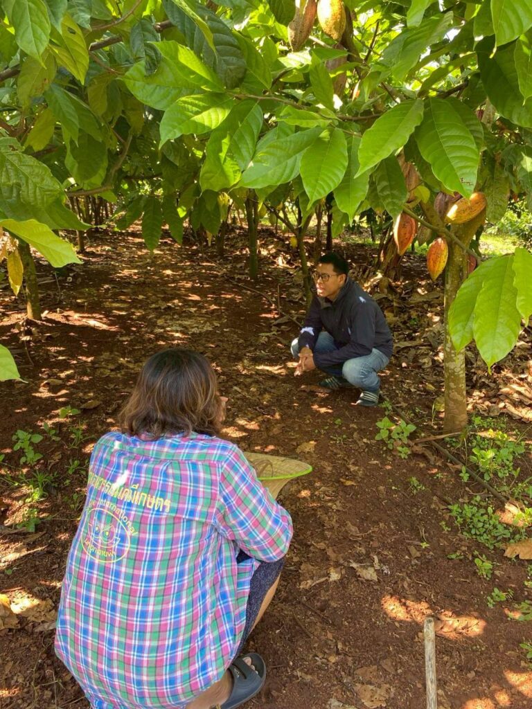 เมื่อวันที่ 11 – 14 พฤศจิกายน 2568 เจ้าหน้าที่ส่วนวิจัยเศรษฐกิจพืชสวน สำนักวิจัยเศรษฐกิจการเกษตร ลงพื้นที่สำรวจข้อมูลการตลาดโกโก้เพื่อศึกษาความต้องการผลิตภัณฑ์โกโก้และการขยายตลาดโกโก้ในประเทศ ในพื้นที่จังหวัดตาก โดยสัมภาษณ์และเก็บข้อมูลจากกลุ่มวิสาหกิจผู้แปรรูปผลิตภัณฑ์โกโก้และผู้บริโภคผลิตภัณฑ์โกโก้ เพื่อนำข้อมูลไปวิเคราะห์ความต้องการโกโก้ของผู้แปรรูปและปัจจัยที่มีผลต่อความต้องการผลิตภัณฑ์โกโก้ของผู้บริโภค ต่อไป