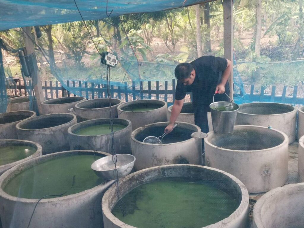 เมื่อวันที่ 4 – 7 พฤศจิกายน 2568 เจ้าหน้าที่ส่วนเสริมสร้างนวัตกรรมด้านวิจัยเศรษฐกิจการเกษตร สำนักวิจัยเศรษฐกิจการเกษตร ได้ลงพื้นที่จังหวัดราชบุรี และจังหวัดกาญจนบุรี เพื่อติดตามสถานการณ์การผลิตและการตลาด “ผำ” พืชน้ำขนาดเล็กที่ได้รับการจับตามองว่าเป็นพืชทางเลือกที่มีศักยภาพต่อการพัฒนาเชิงเศรษฐกิจและสุขภาพในอนาคต ด้วยจุดเด่นที่เพาะเลี้ยงง่าย ขยายพันธุ์ได้รวดเร็ว และอุดมไปด้วยคุณค่าทางโภชนาการ โดยเฉพาะโปรตีนที่สูงถึงร้อยละ 40 ของน้ำหนักแห้ง
