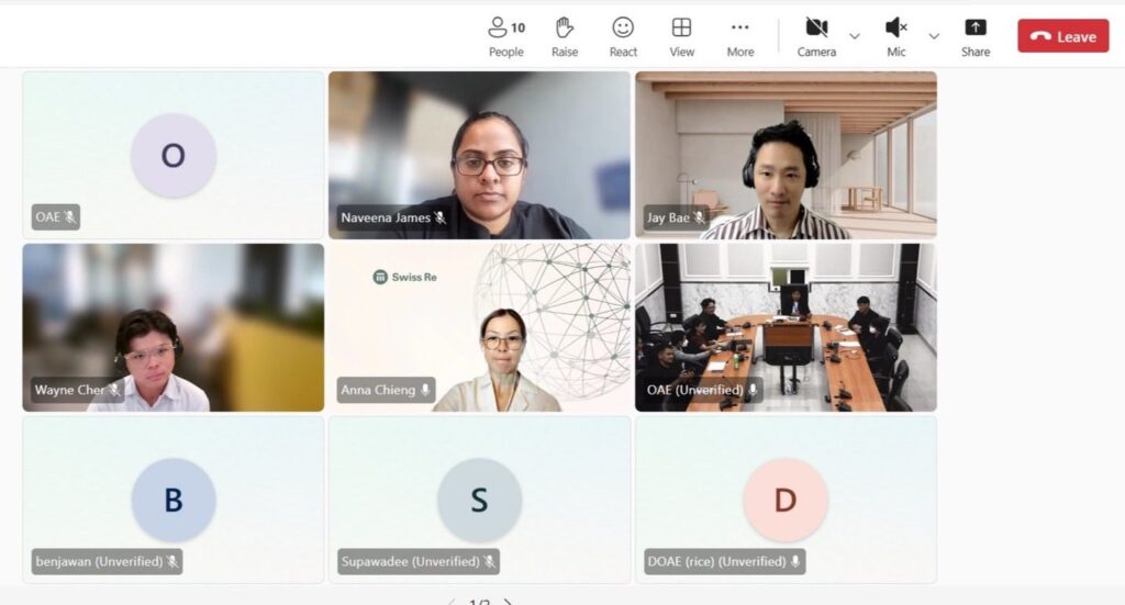 On November 7, 2025, the Bureau of Agricultural Economics, represented by Ms. Sukallaya Kasem, Expert on Agricultural Natural Resource Economics, and government official from the Division of Household Socio-Economics and Agricultural Crop Insurance Research, participated in an online meeting titled “Workshop on Reform of Thailand Crop Insurance Scheme through Public-Private Partnerships” together with Mr. Jae Bae, Head of Agriculture UW SEA, ANZ Japan and Korea; Ms. Anna Chieng, Senior Client Manager, Public Sector Solution; and the Swiss Re team. The meeting involved discussions on agricultural insurance in Thailand and the presentation of recommendations for the future development of Thailand’s agricultural insurance system.