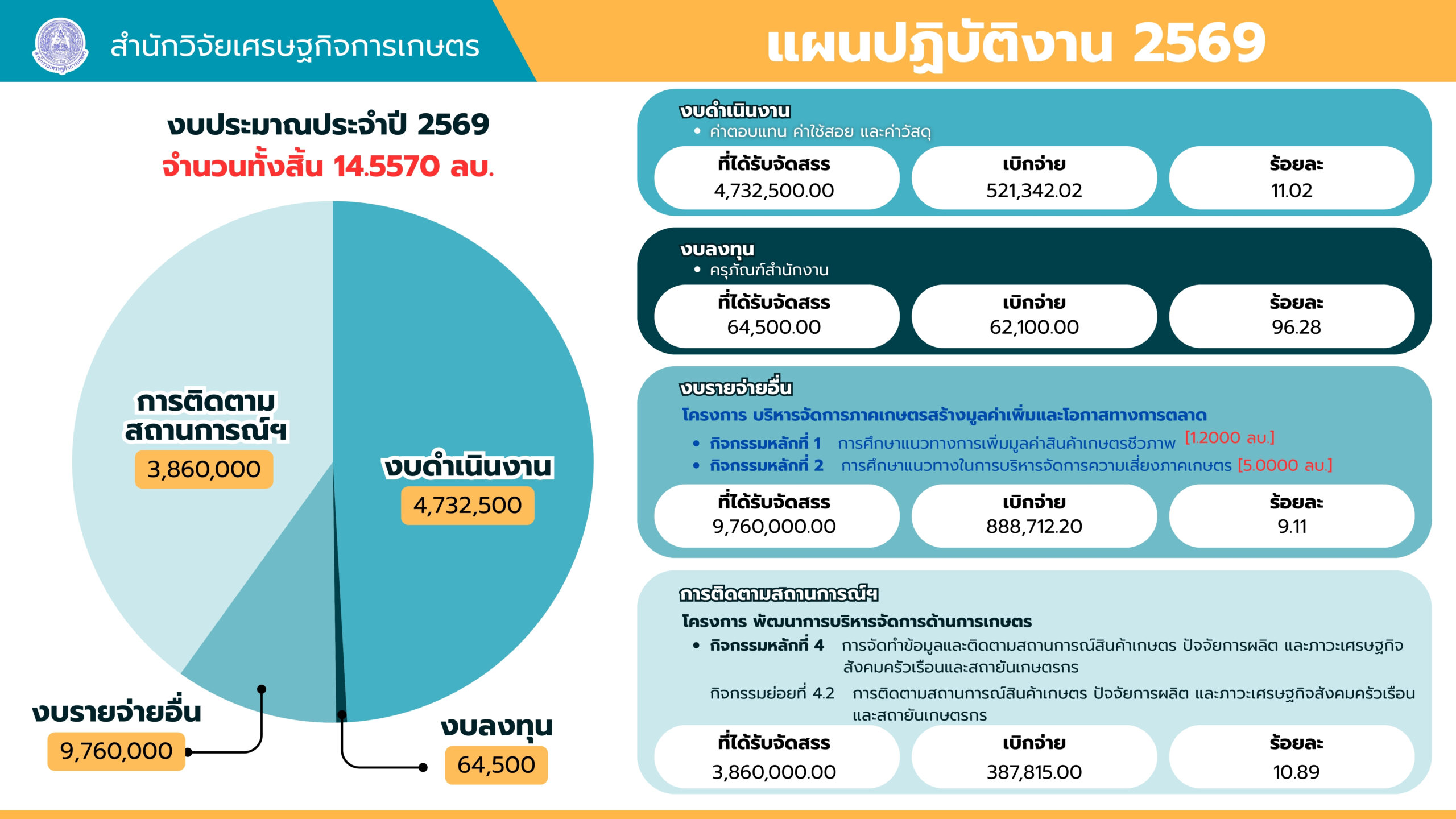 แผนปฏิบัติงานสำนักวิจัยเศรษฐกิจการเกษตร ประจำปี 2569